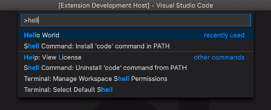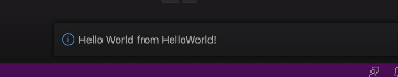 F5启动后,Ctrl+Shift+P打开命令行搜索板,输入Hello World,然后选中,会发现下方弹出插件提示成功信息。(这里不好截图,就截图的官方文档视频里的)