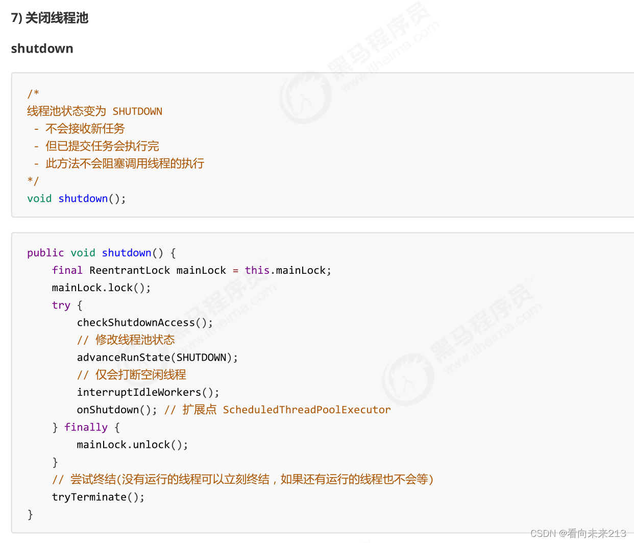 所以线程池的所有任务完成后,它最终会收缩到corePoolSize的大小。