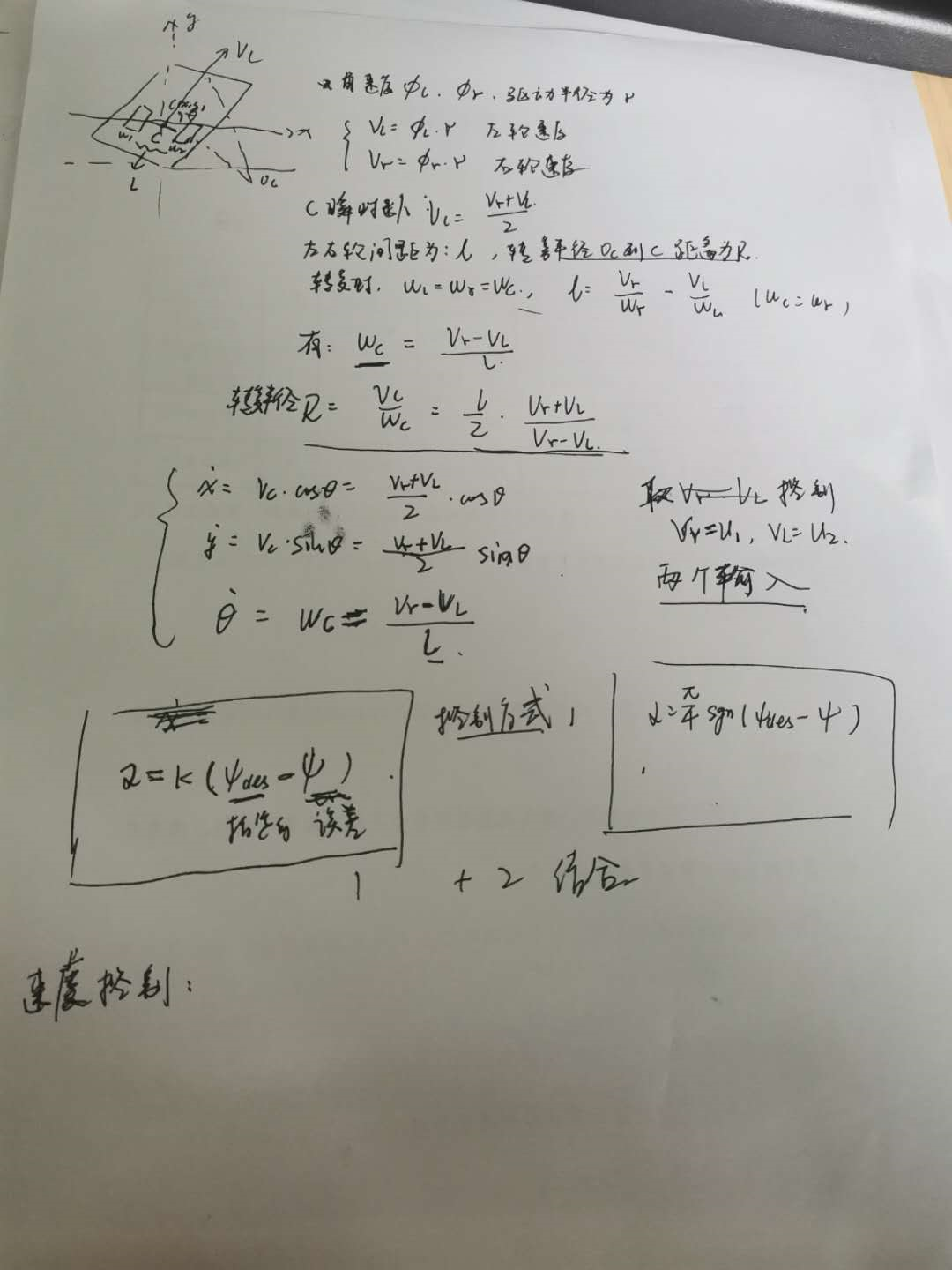 机器人控制方面有两种模型,一是自行车模型,二是差速模型,今天主要推导了差速模型,实验室的履带车都是差速模型。