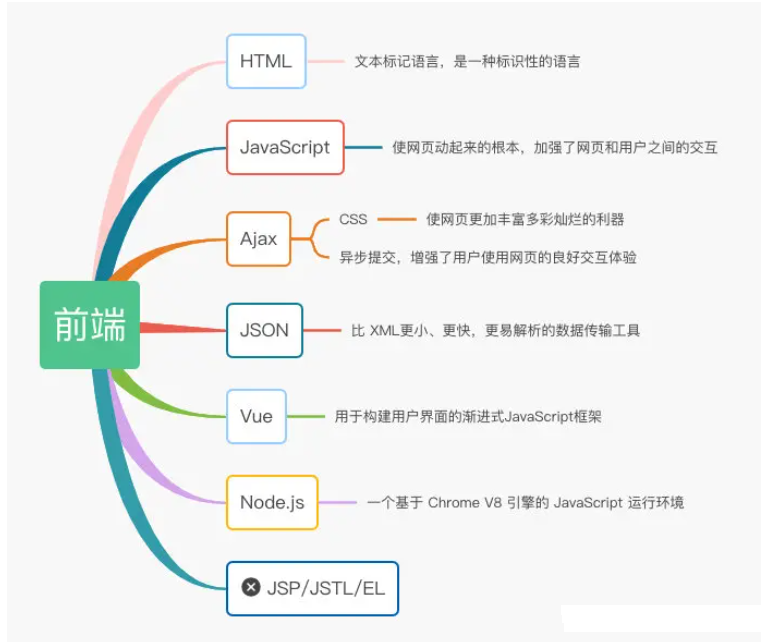 HTML、CSS、JS、Ajax我觉得是必须掌握的点,看着简单其实深究或者去操作的话还是有很多东西的,其他作为扩展有兴趣可以了解,反正入门简单,只是精通很难很难。