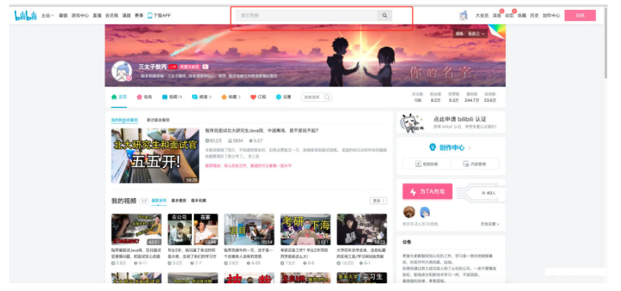 就比如我最近在B站看了《龙王赘婿》相关的视频,我的默认搜索推荐就出现了《画网赘婿》的默认搜索推荐,这就是根据近期热点和你个人喜好算出来的,大家可以进去刷新试试。