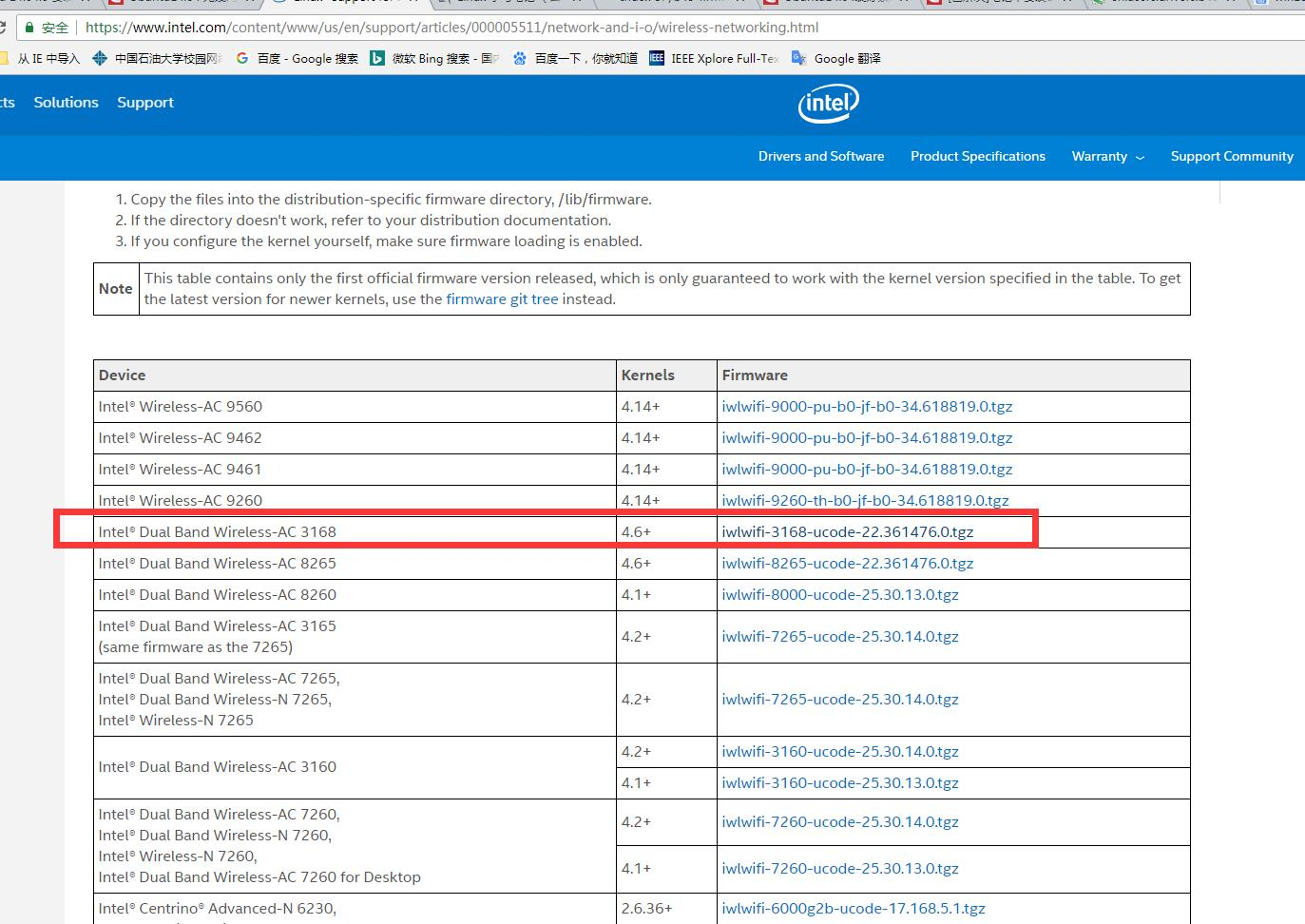 Intel Dual Band Wireless-AC 3168 4.6+ iwlwifi-3168-ucode-22.361476.0.tgz