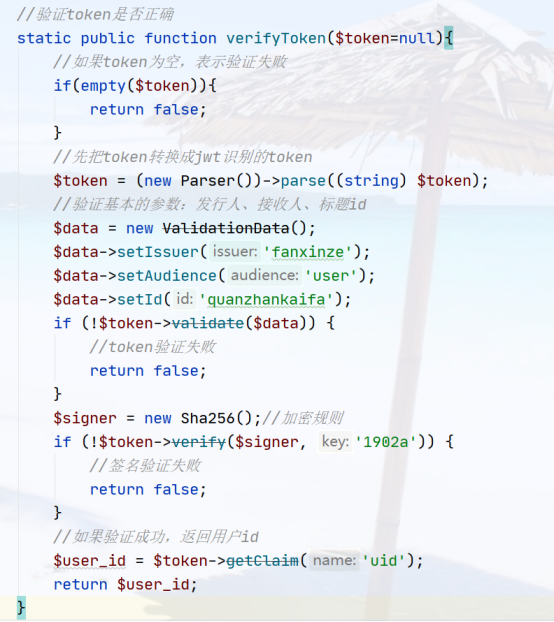 8.封装验证Token的方法,如果失败返回false,如果成功返回用户id