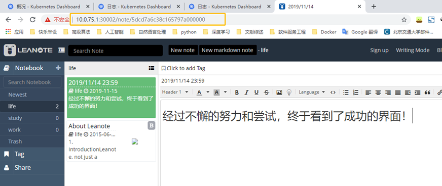 上一篇我们已经安装好一个Leanote的镜像,下面我们把它部署到K8s上。