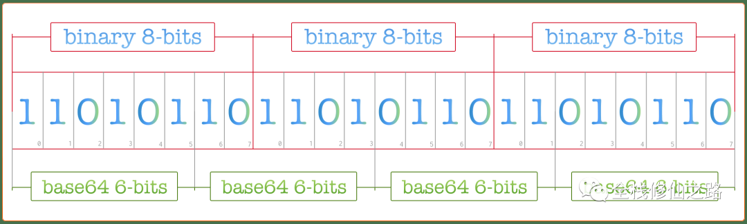 接着我们以每 6 个比特为一个单元,进行 base64 编码操作,具体如下图所示: