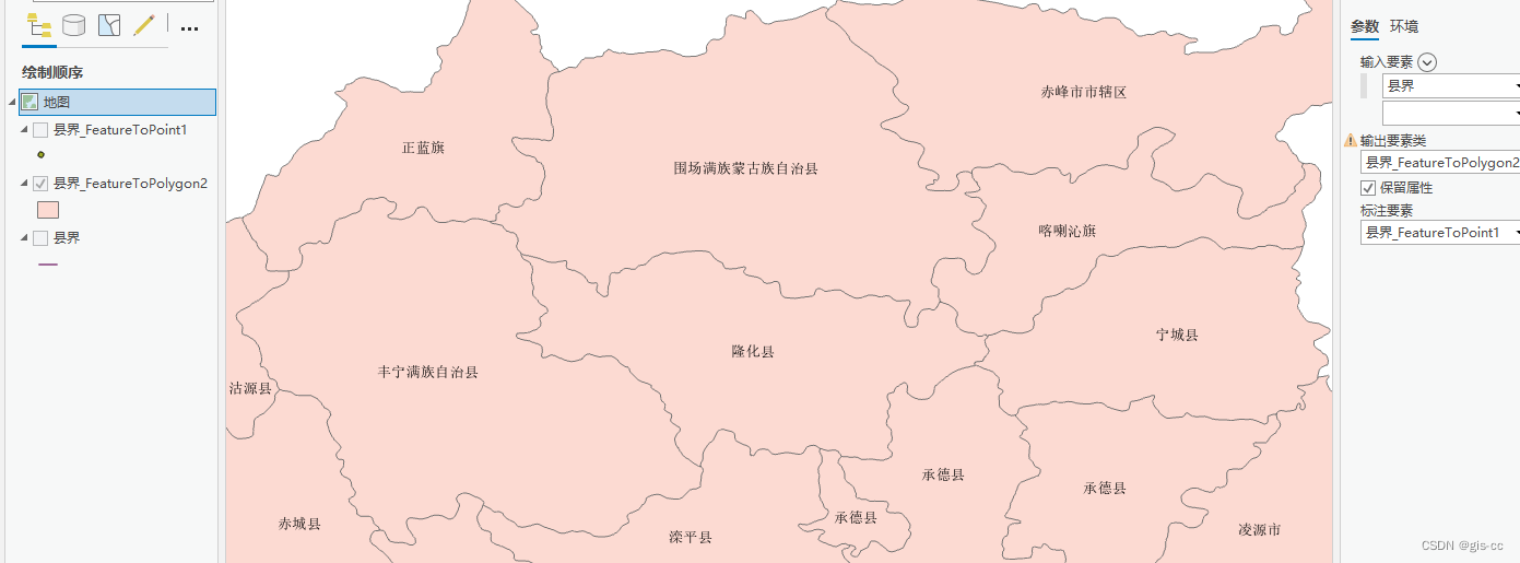 arcgis 线转面如何保留线的属性?1.首先进行要素转点 2.进行要素转面,标注要素选刚才输出的点。3.点击标注,就可以显示县界名称,属性即可保留。 版权声明:本文为chenchen2360060原创文章,遵循CC 4.0 BY-SA版权协议,转载请附上原文出处链接和本声明。原文链接:https://blog.csdn.net/chenchen2360060/article/details/126287130