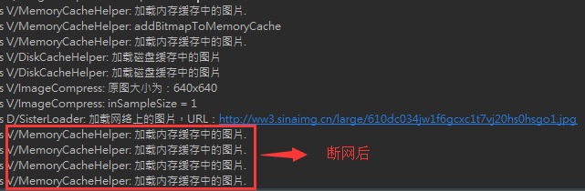 然后断开网络,点下一个妹子会加载内存缓存中的图片