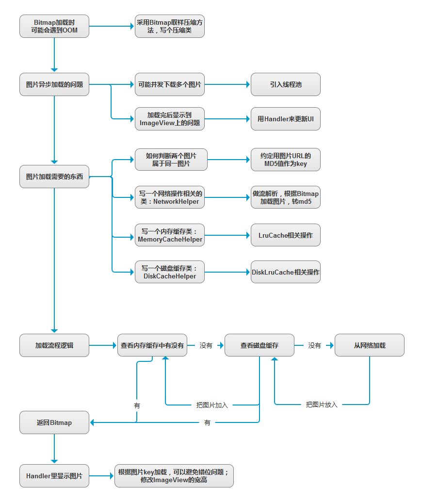需要显示图片 ——> 查内存(有的话显示) —没有—>查磁盘(有的话显示) —没有—>