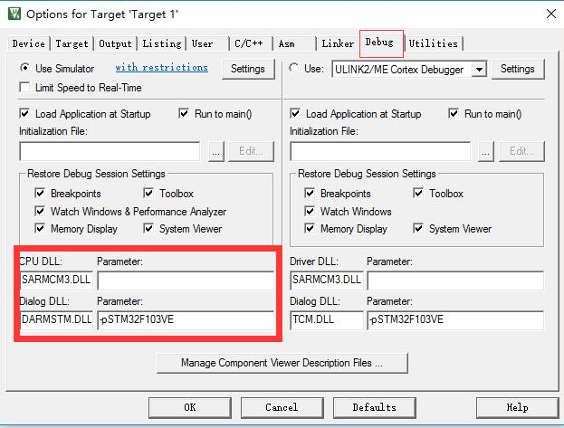 Debug选项设置如下:其中Parameter的设置根据自己建立项目时选的开发板型号填写。