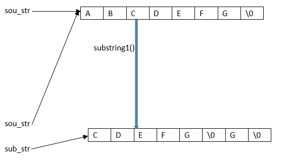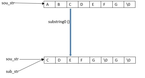 - 截取后,sou_str与sub_str指向是内存中的同一片区域
