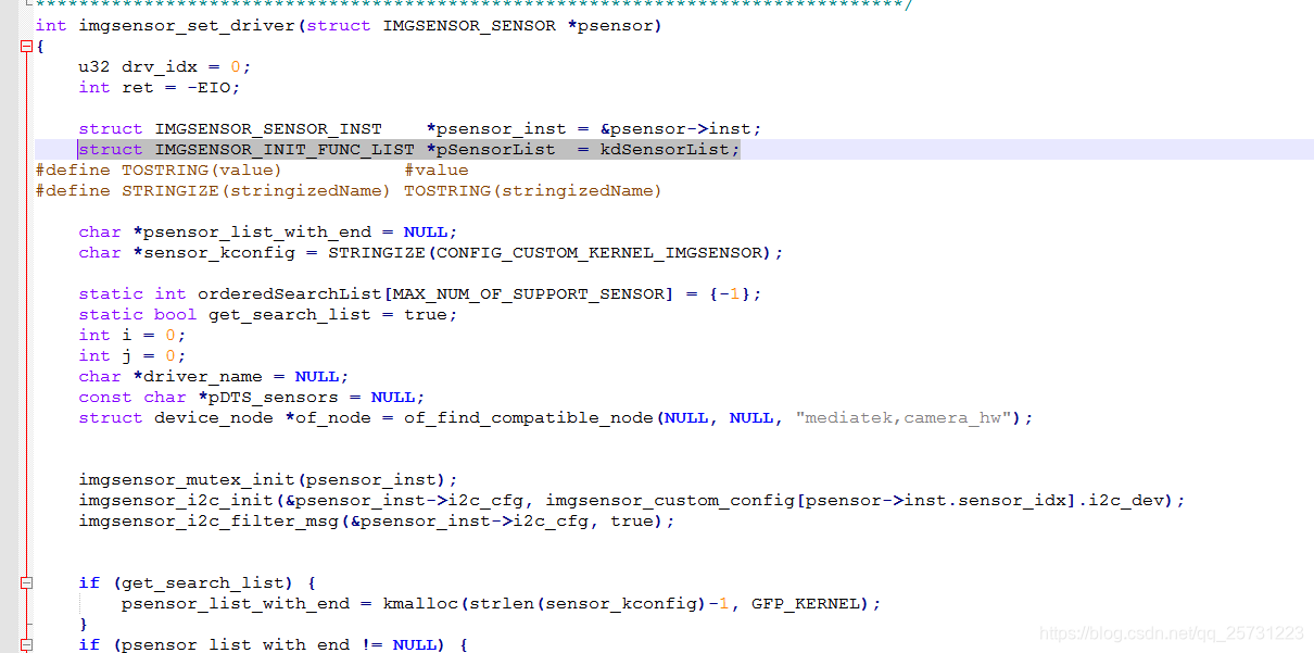 };2:imgsensor.c的imgsensor_set_driver调用kdSensorList获取设备信息,这步猜测是机器上电就获取camera设备
