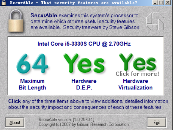 1.首先需要测试一下cpu是否满足安装要求,使用securable工具可以查看cpu状态