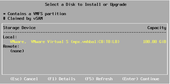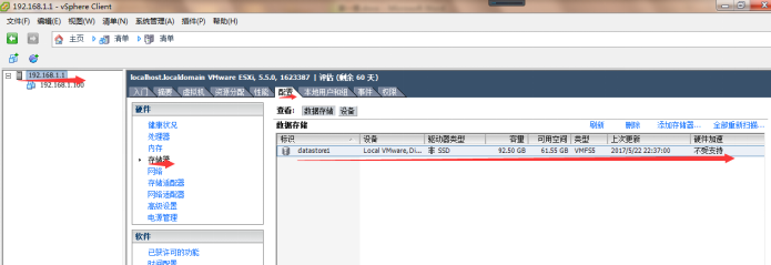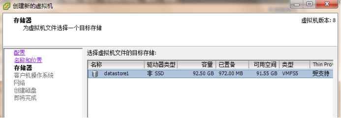 esxi5.5提供了两种磁盘方式,分别位本地磁盘方式和网络磁盘方式,本例只有一个本地磁盘