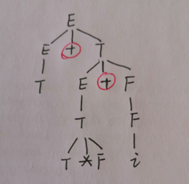 - 对于第二层的非终结符 T,其叶节点所组成的短语是 T*F + i