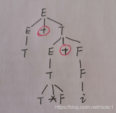 - 对于第一层的非终结符 E ,其叶节点所组成的短语是 T + T*F + i