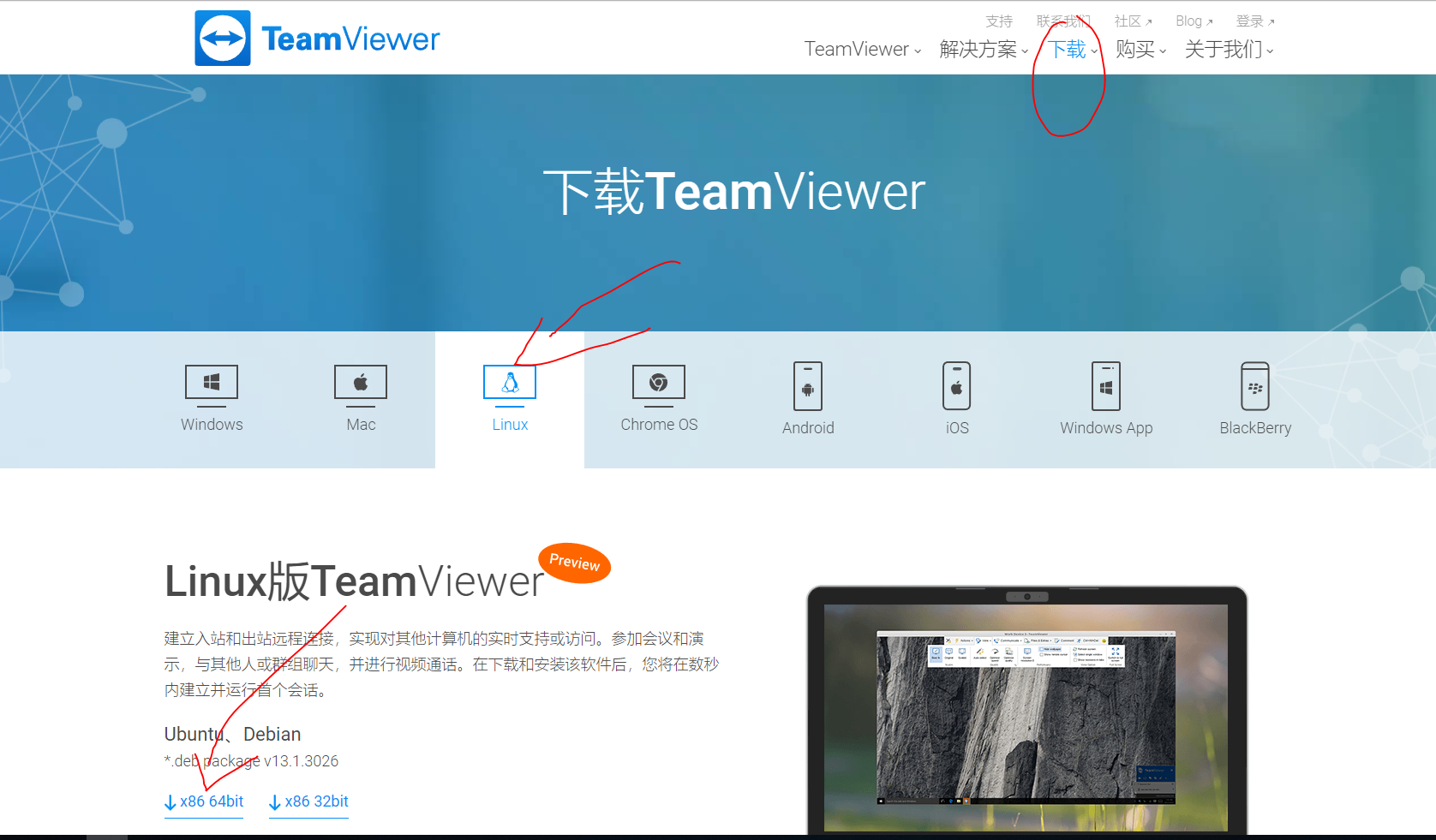 首先,上teamviewer官网下载相应的版本(具体如下如操作)