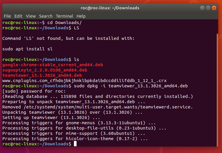 然后,在终端进入下载目录下面找到安装包,输入以下命令