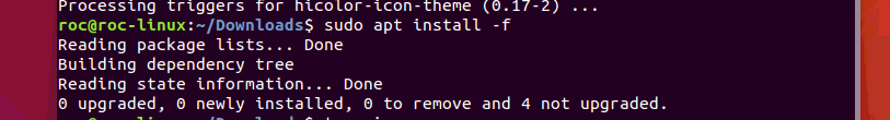 安装过程中,如果出现错误,运行sudo apt install -f 命令安装依赖项,如下图