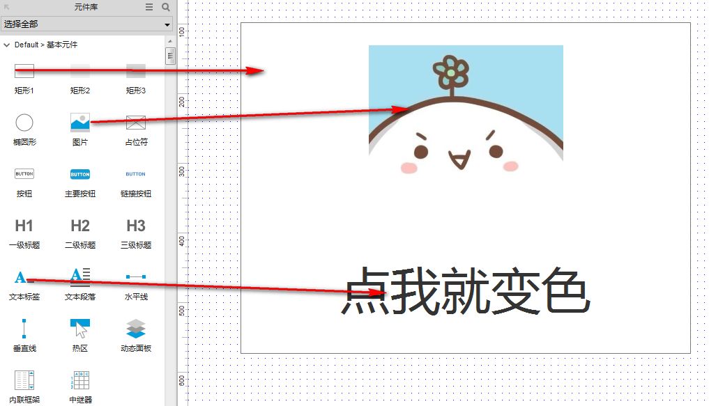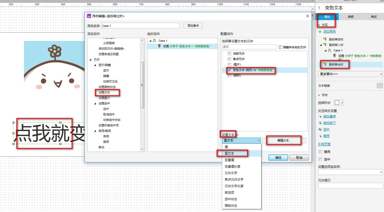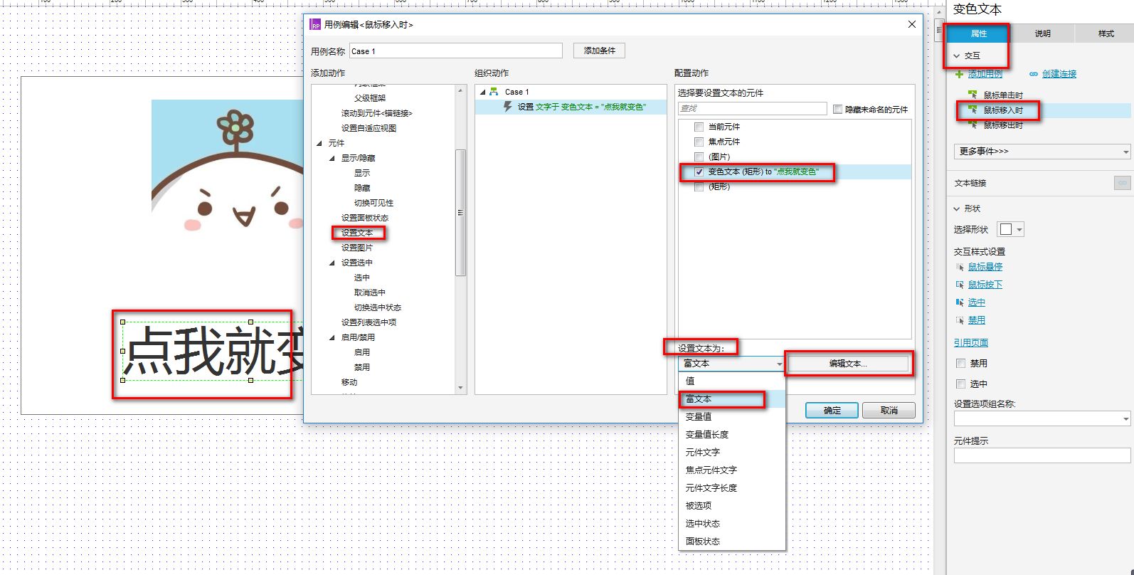 - 在属性一栏选择设置“交互”下的“鼠标移入时”的用例