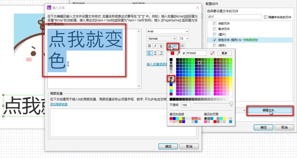 - 在“文本编辑窗口”选中要编辑的文本,选择“字体颜色”一栏,下拉选择相应的颜色