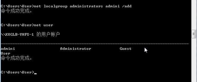 net user admini admin /add
