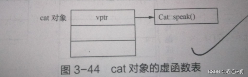 };将cat_speak()函数修改与基类同名,这个时候我们再来看看虚函数表: