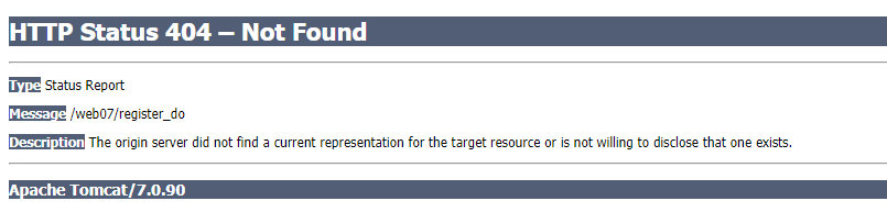 问题:启动Tomcat成功,可以显示初试页面,就是找不到对应Servlet映射的JSP页面,出现如图404错误。