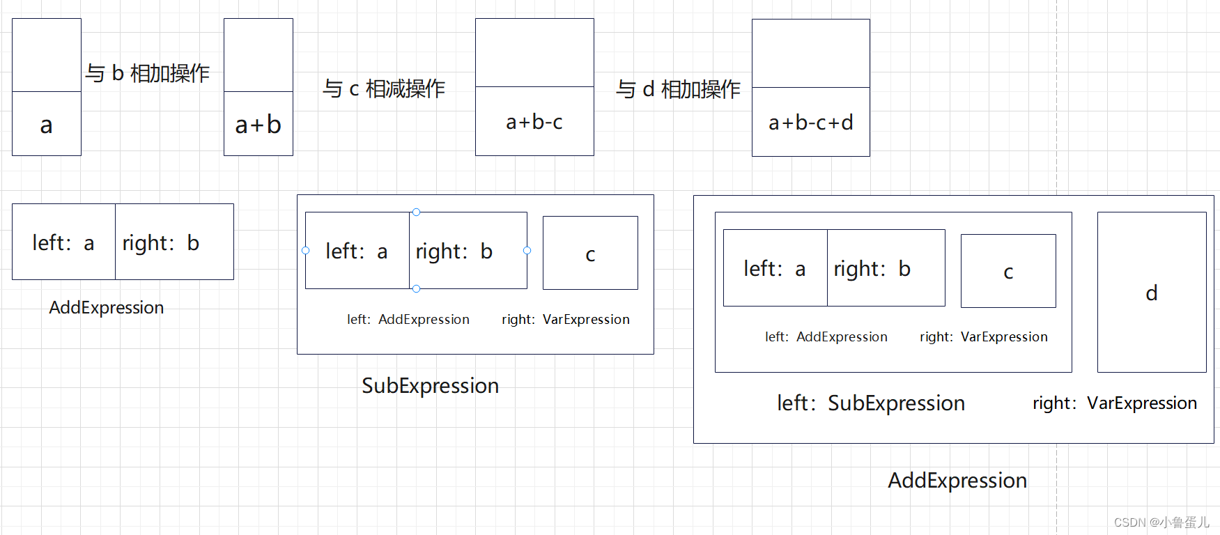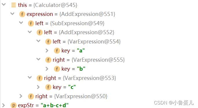 加法解释器,减法解释器就是非终结符表达式,因为它们还能再分解成left,right