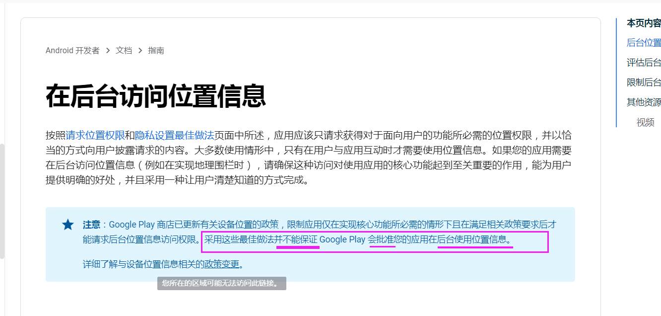 有人企图使用请求Android在后台访问位置信息的方式,来让安卓应用不被杀死从而实现apk保活。但是,官方的申明是,这种方式并非可靠: