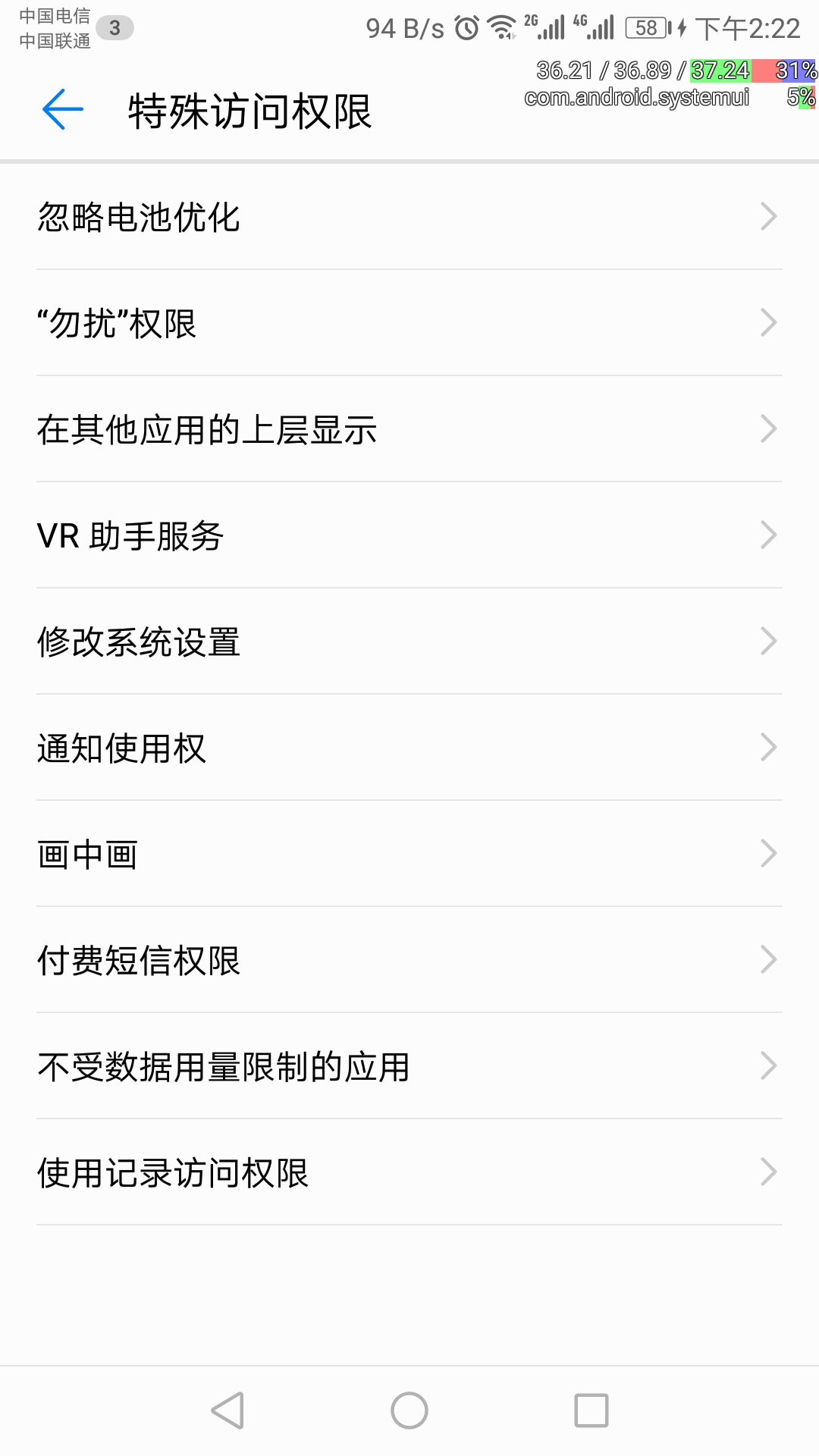 进入手机设置的“特殊访问权限”(可通过类似搜索“电池”这种简单的方法快速找到,否则可能你会累坏了)。以华为手机为例: