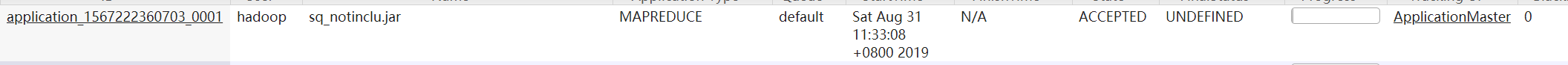 在使用sqoop向mysql导出数据时,由于运行过慢,在运行到reduce时,ctr+z强制退出了,此时不知怎么的在运行其他mr时,状态一致处于accepted undefine状态,经过一番百度之后,发现,在默认状态下,只能运行一个mr,由于上一个mr还处于一种运行的状态导致后面的任务无法运行,此时只要使用 yarn application --kill杀死失败的任务即可。
