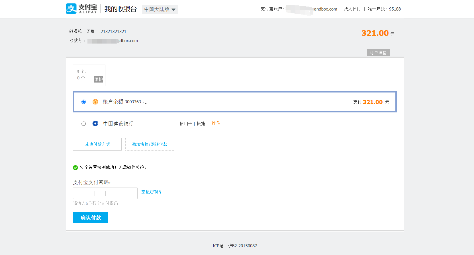 - 代码编写完成,当我们点击前端支付按钮后,便自动跳转至如下界面,代表接口调用成功,后面基本上就全自动化完成了