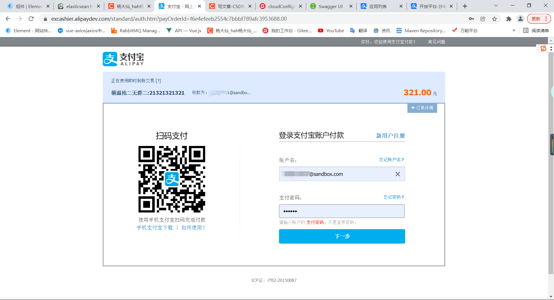 Java前后端 Vue+SpringCloud 整合 支付宝 完成支付(沙箱) 操作流程【详解】
