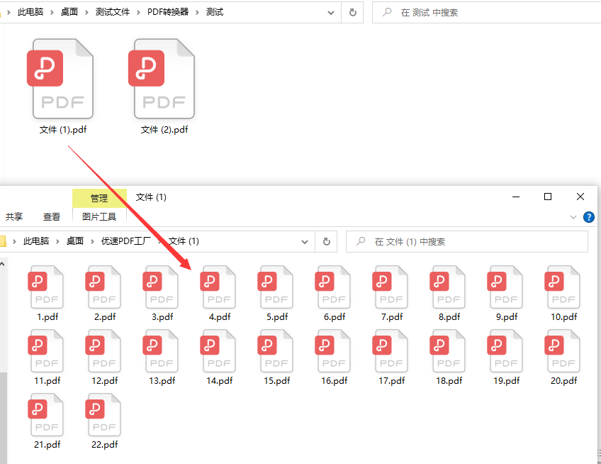 步骤四:通过上述案例拆分的操作,最后我们发现“优速PDF工厂”非常快速完美的将原pdf文件拆分成了一页一页独立的pdf文件。