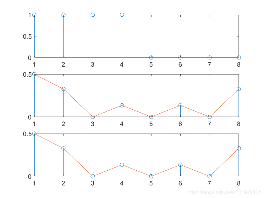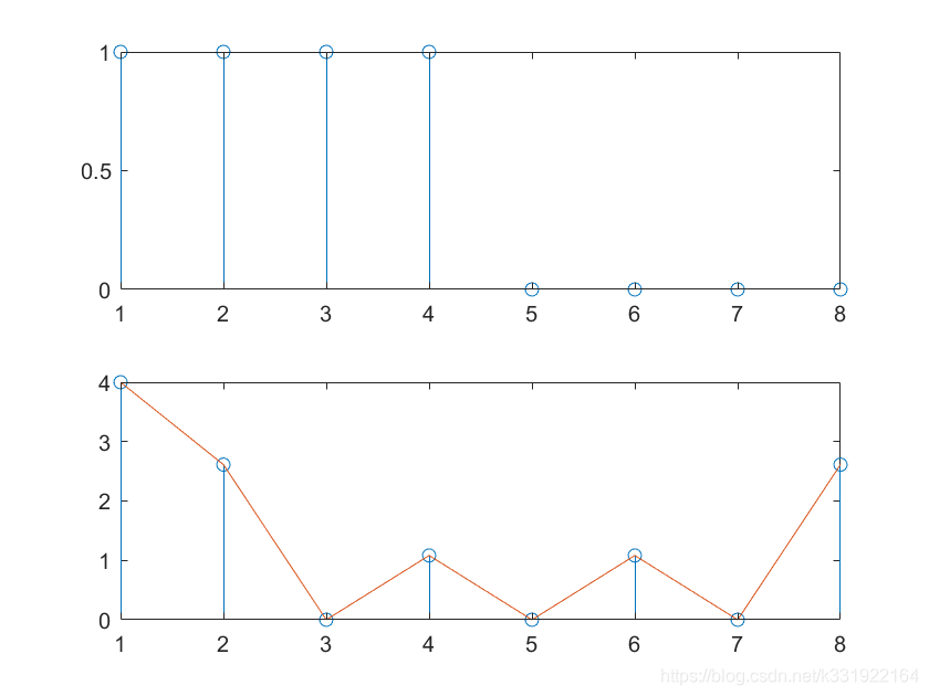 % Xm = [1,1,1,1,0,0,0,0]; %8点时域