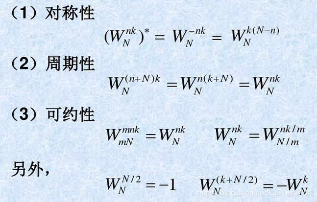 其中可约性:下标N和次方nk,同乘以一个数m,旋转因子的值不变(下面会用到)。