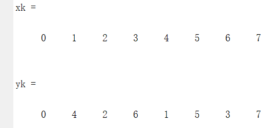我们看到时域的位置并不是从0排到7的。这里可以先将0-7转为2进制,进制的位宽为log2(N)=3,再将2进制整体镜像过来,即可完成倒序。