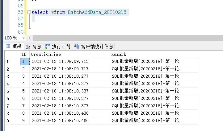 insert into BatchAddData_20210218 (CreationTime,Remark)
