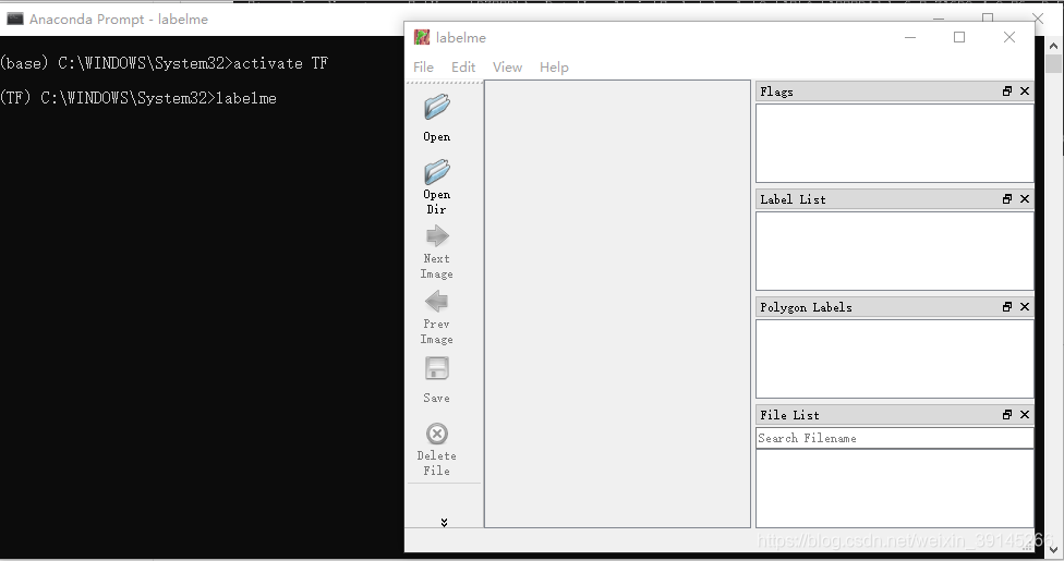 参考自labelme安装及使用,原文为Labelme新创建了一个环境,我在为了深度学习已经配置好的TF环境下直接安装了labelme,如图2。