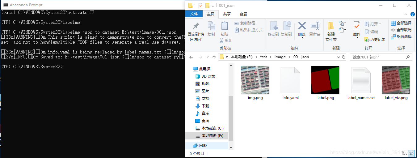 json文件需要转换成png文件,基本转换方法是在安装了labelme的环境下(我的是TF环境),输入下面的代码: