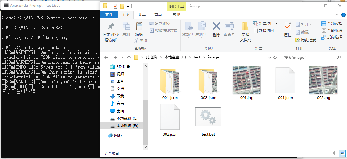 pause就这三行代码,解决了困扰我一下午的问题。新建一个txt文件,把这个复制进去,然后改名为test.bat,和要转换的文件放在一起。然后在激活相应环境下(我的就是TF环境命令行下),进入所在文件目录,命令行输入test.bat就可以了,如图7,图8所示。