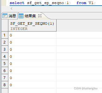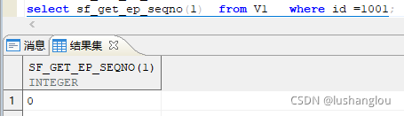 1)select sf_get_ep_seqno(1) from V1 where id =1001;它的执行结果跟表V1里面id =1001对应的数据完全无关,sf_get_ep_seqno(1) from V1的结果就是rowid =1的数据 的站点号0,这个句子的执行结果完全等同于select 0 from V1 where id = 1002