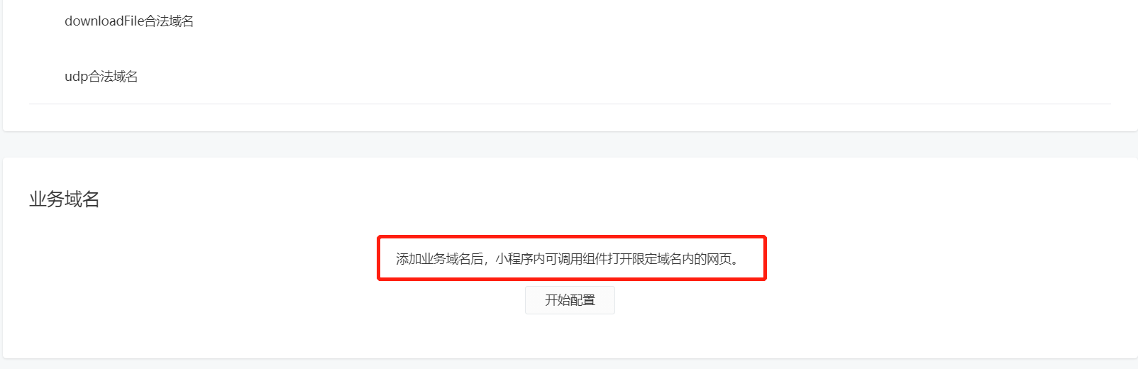 - 当小程序内需要跳转 第三方 网站 或 嵌入 第三方 网页的时候,必须在 微信公众平台后台 配置跳转的域名为可信业务域名。快速跳转至 微信公众平台,设置路径 开发 -> 开发管理 -> 开发设置。