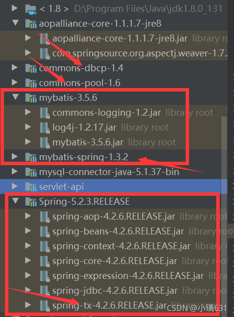 导入spring和MyBatis使用的jar包