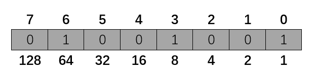 二进制补码用 1 字节的后 7 位表示 0~127 ,高阶位设置为 0 。