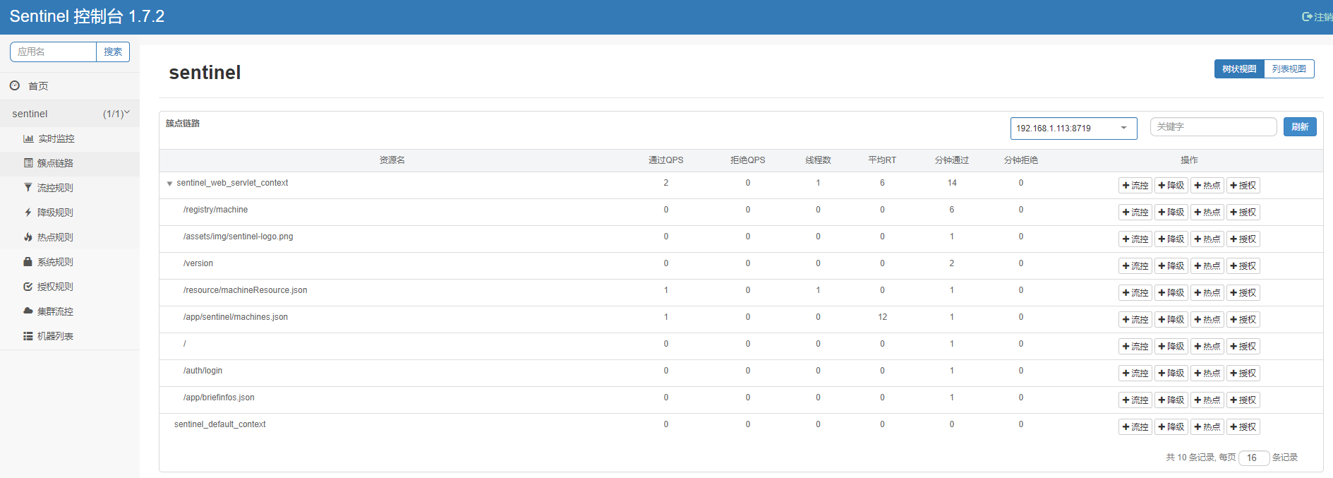 然后调用:这个流控规则的接口:如何能正常调用了,再刷新控制台 点击--簇点链路 看资源名中是否有刚刚调用的接口