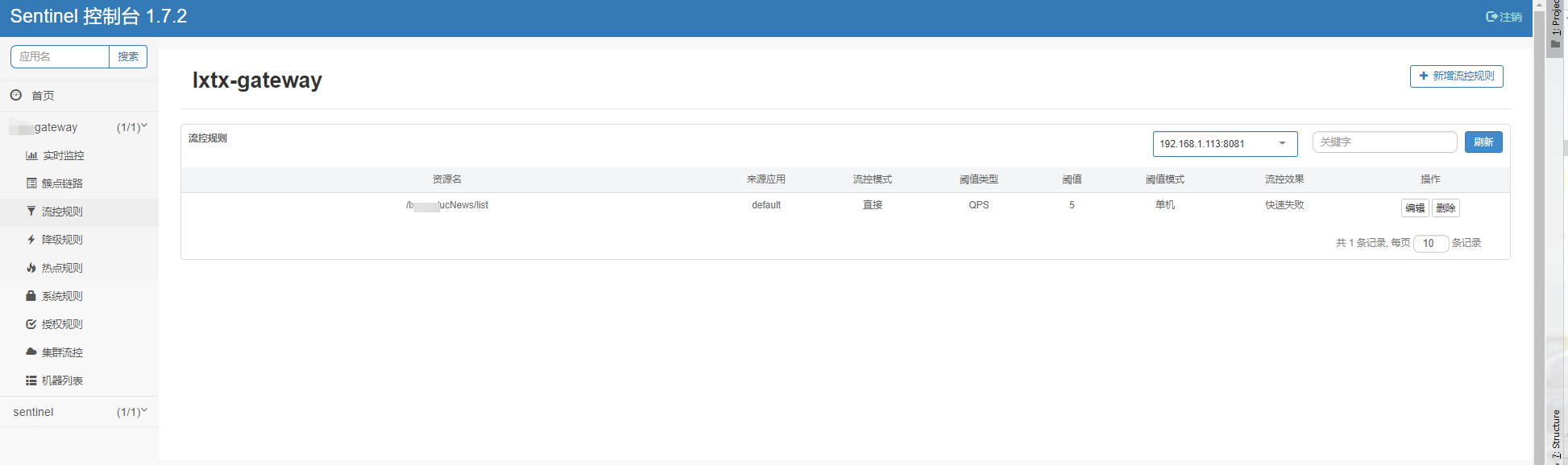 二、整合--网关流控控制台