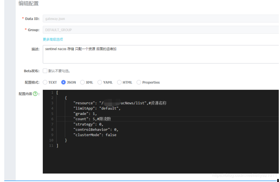 4.在nacos中添加 gateway.json 配置文件