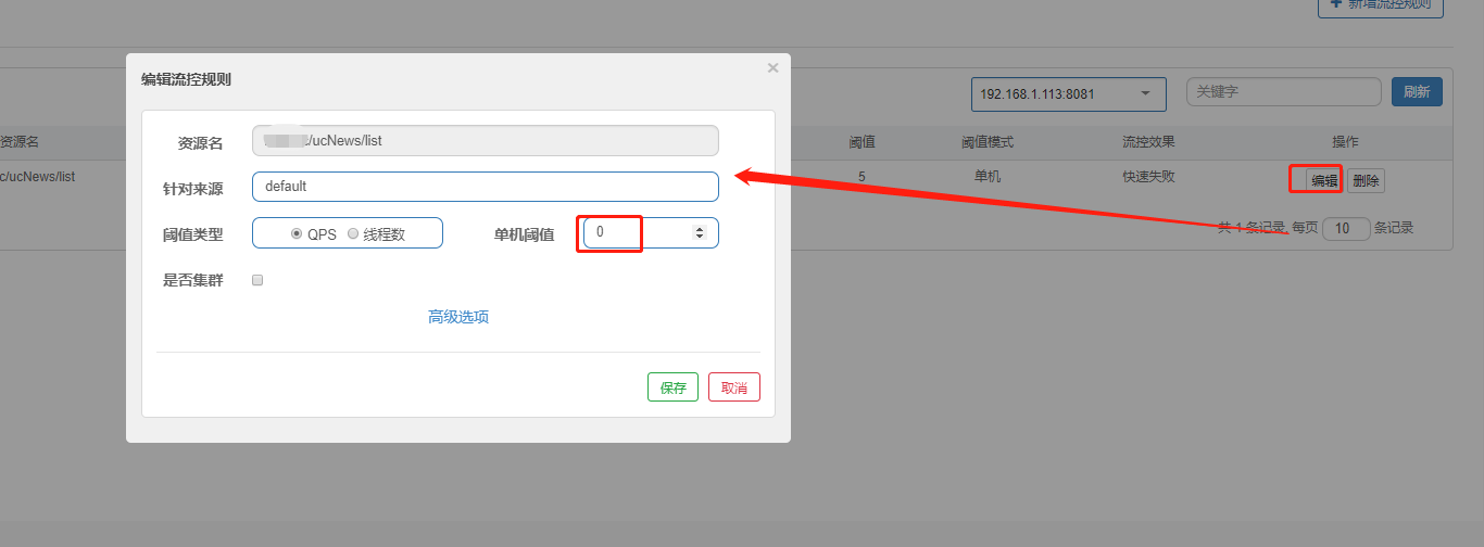 最后将 流控规则中的 阈值改为0