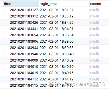 我采用的方法是在原来的表中增加一个字段login_time,然后使用convert函数,将原来double类型time字段的值批量转化成datetime类型并赋给login_time字段